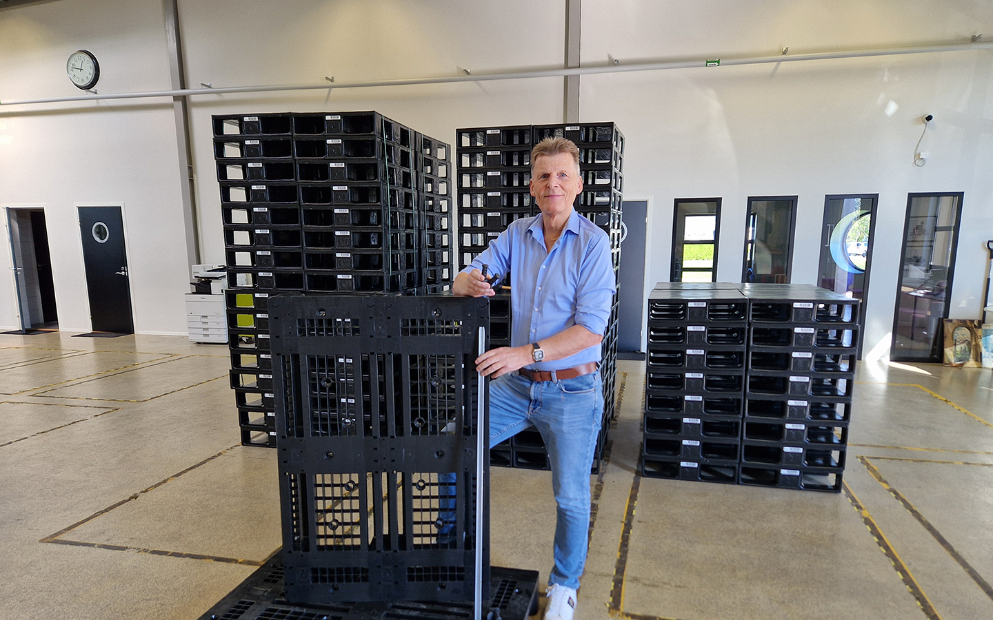 DEN SMARTE VEIEN TIL BÆREKRAFTIG LOGISTIKK: Sirkulærpallen er løsningen som tar logistikkutfordringer til et nytt nivå med overlegen ytelse og bærekraft. Den er både lettere og sterkere enn tradisjonelle trepaller, og gir imponerende lastekapasitet og lang levetid. Sirkulærpallen har en levetid på opptil 8 år, langt mer enn trepaller som ofte må repareres eller byttes ut etter få bruk. Den er 100 % resirkulerbar og laget av resirkulert materiale, noe som gjør den til et grønt og sirkulært valg for fremtiden. Sirkulærpallen er allerede tilpasset fremtidige EU-standarder, så du er godt rustet for morgendagens krav. Hvorfor velge Sirkulærpallen? Fordi den gir sikkerhet, stabilitet og ytelse uten fliser eller sprekker, er perfekt for automatiserte systemer, og krever minimalt med vedlikehold.Geir Vidar Persen, Salgsdirektør IP-Group