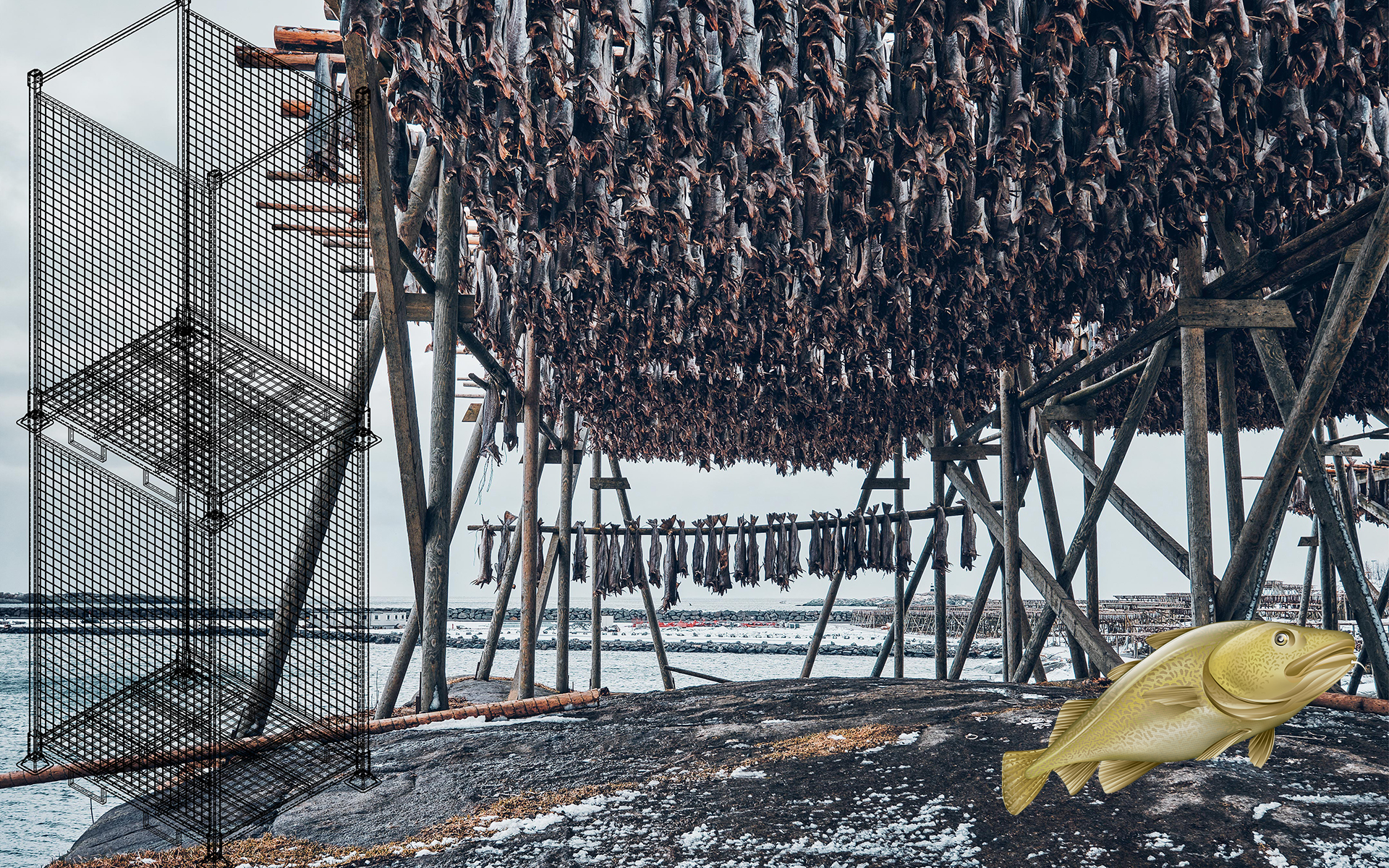 Fiskeribur for tørrfisk – i dobbel stabling. Smart og plassbesparende